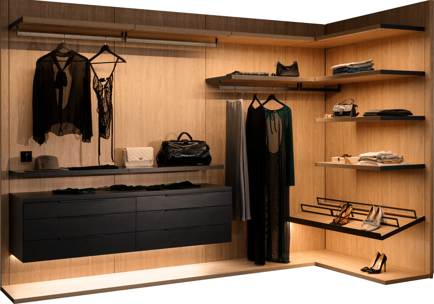 Опциональная подсветка ящиков, полок и тумб